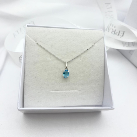 • Gargantilha Prata 925 com Zircônia Azul Céu – 45 cm