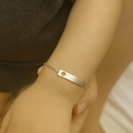 • Pulseira infantil chapa gravaçao com coração vazado 14,5 cm prata 925
