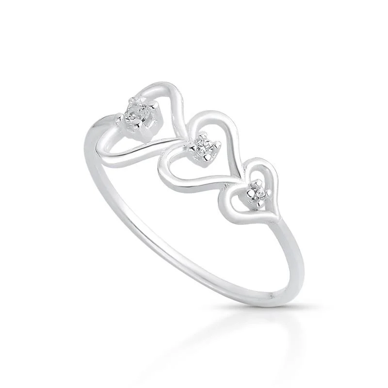 ANEL 3 CORAÇOES VAZADOS PRATA 925