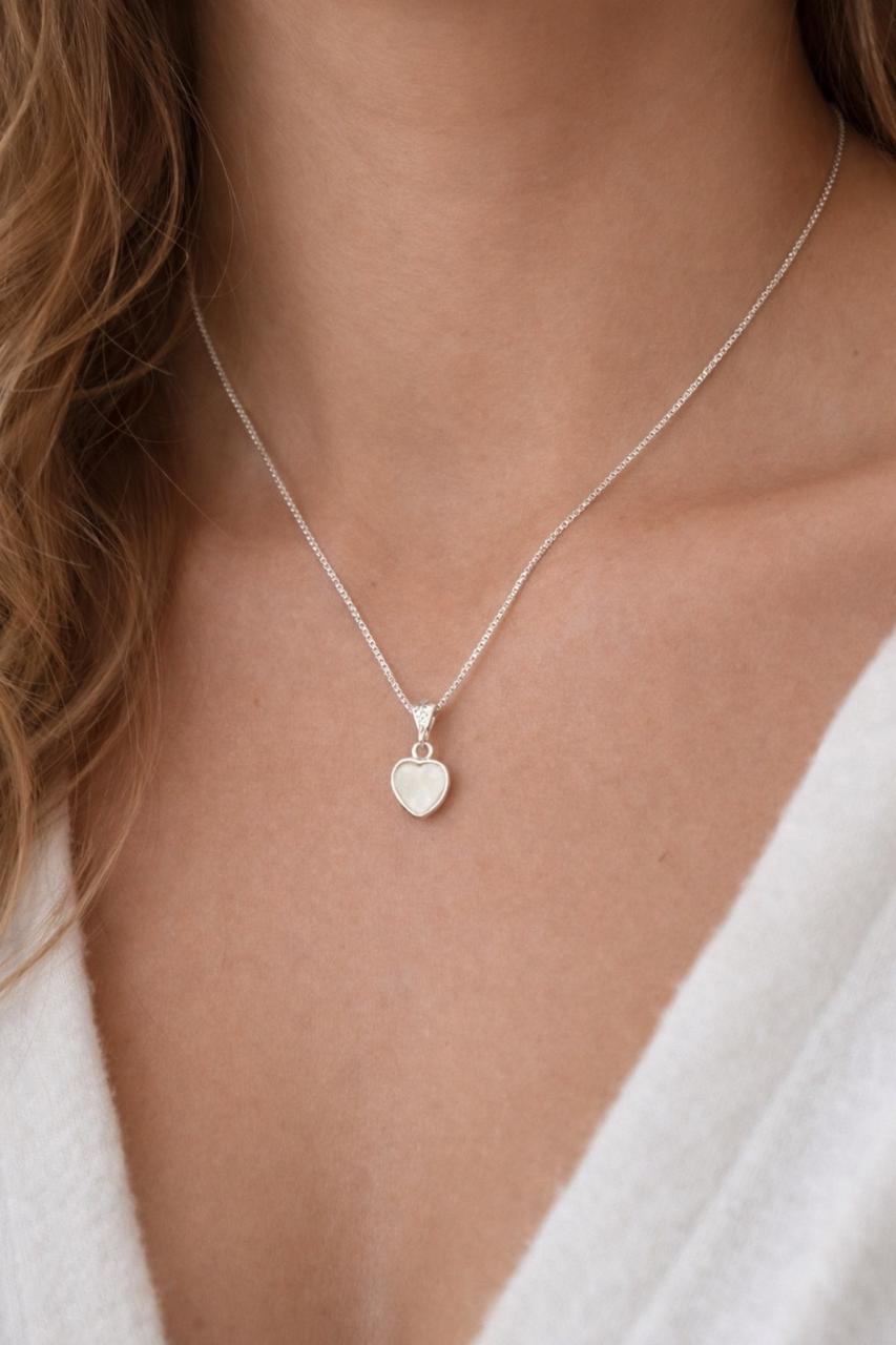 O coração com detalhe em madre pérola traz um efeito suave e luminoso, refletindo a luz de maneira delicada. Uma peça elegante que combina romantismo e sofisticação na medida certa.
