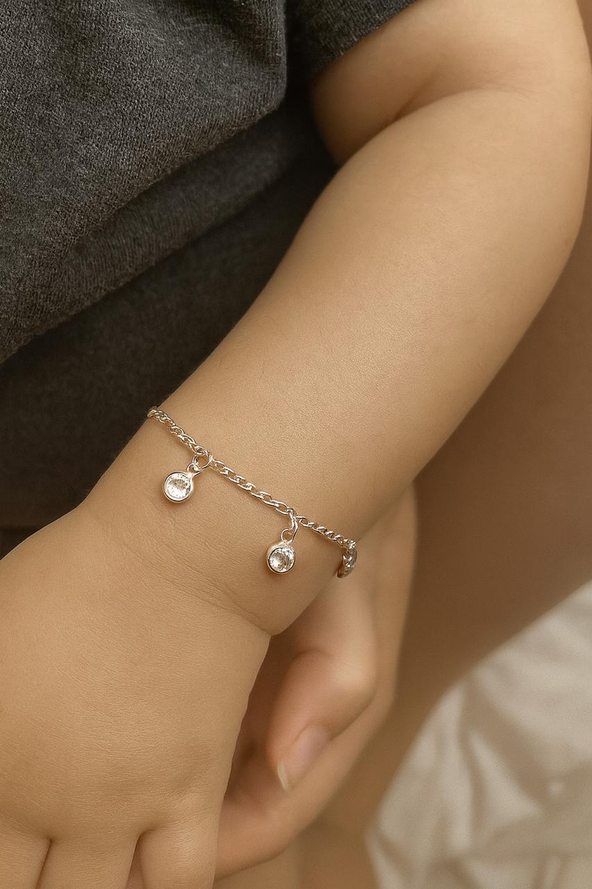 A Pulseira Infantil com 3 Pontos de Luz é uma joia suave e sofisticada, ideal para acompanhar momentos especiais da infância.
