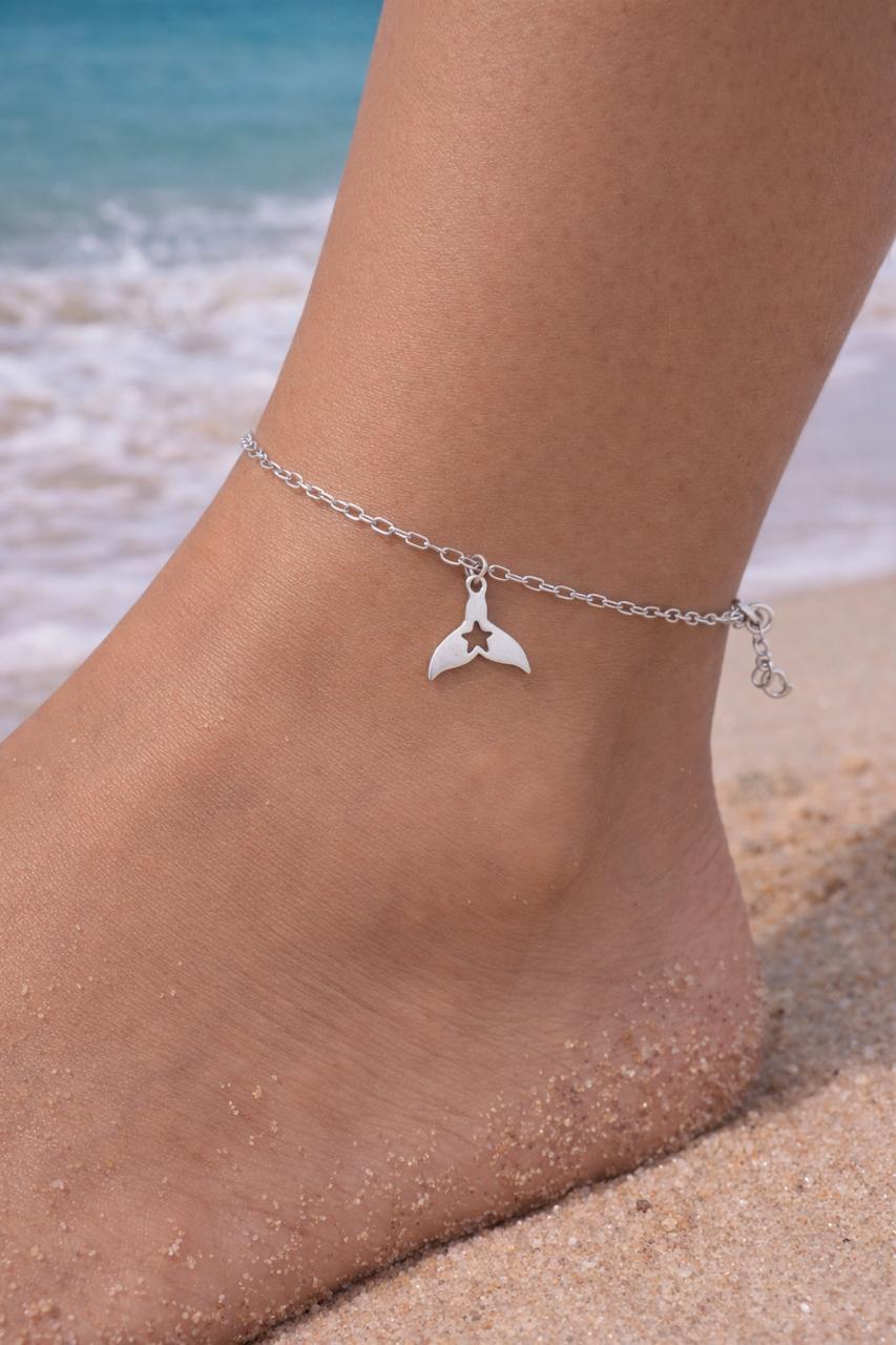 Tornozeleira diversas calda sereia prata 925 26 cm